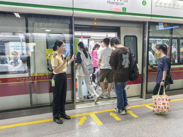 国庆长假,广州地铁“小黄人”的身影仍在沿线各个车站忙碌着。今年国庆假期,地铁四号线黄村站面临节日大客流压力的同时,还叠加了二十一号线天河公园至员村区段拆解停运的绕行客流带来的双重挑战,预计改造期间黄村站的换乘客流将增加一倍,面对前所未有的挑战,黄村站高级值班站长陈想娣在国庆期间坚守岗位,全力保障车站客运服务安全。