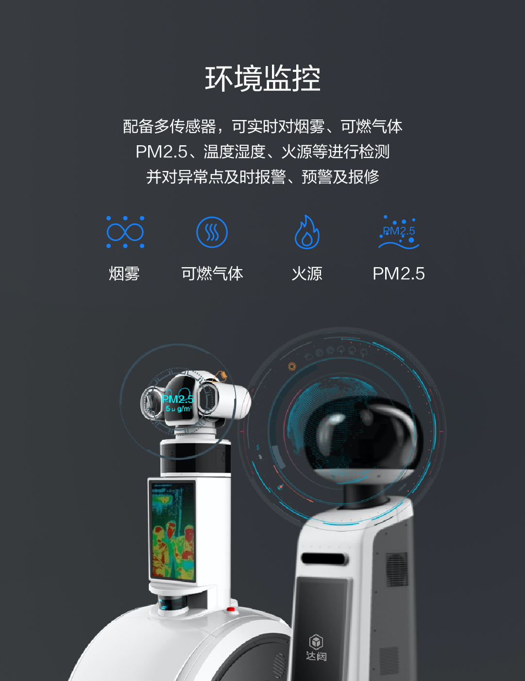 PM2.5、温度湿度、火源等进行检测,